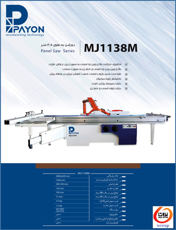 حداکثر متر پشت اره: 1200 میلیمتر
